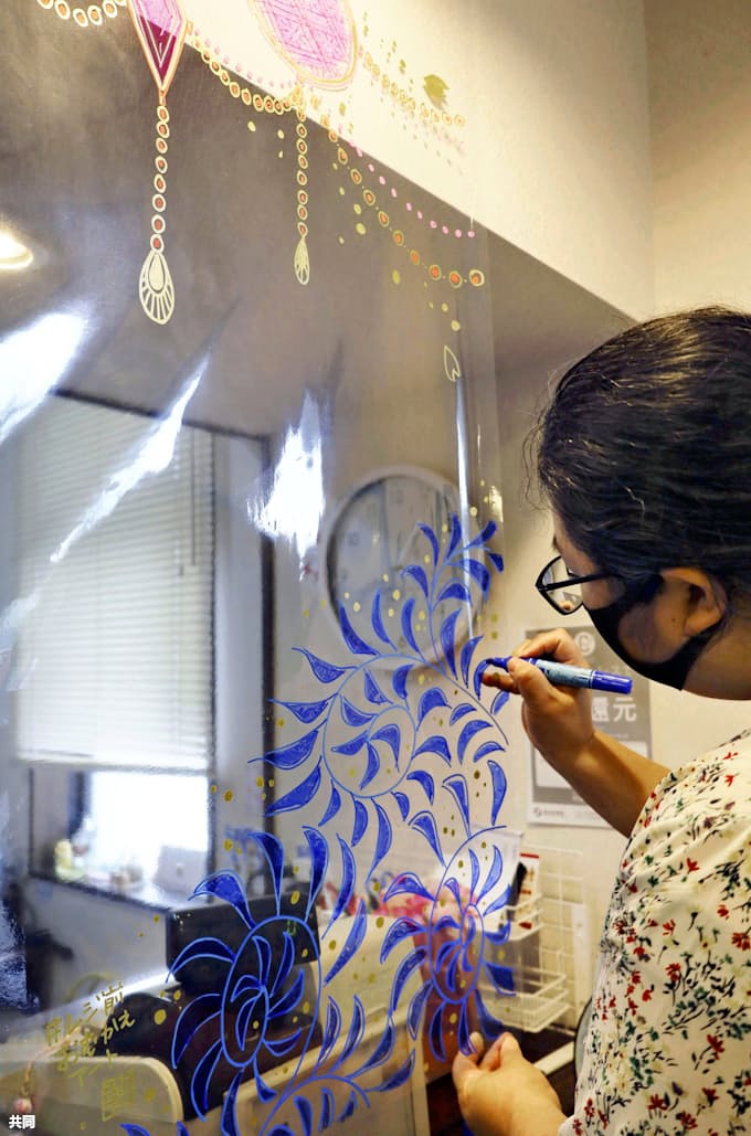 新型コロナ レジ透明シートに唐草模様 有田焼絵付け師らが彩り 日本経済新聞